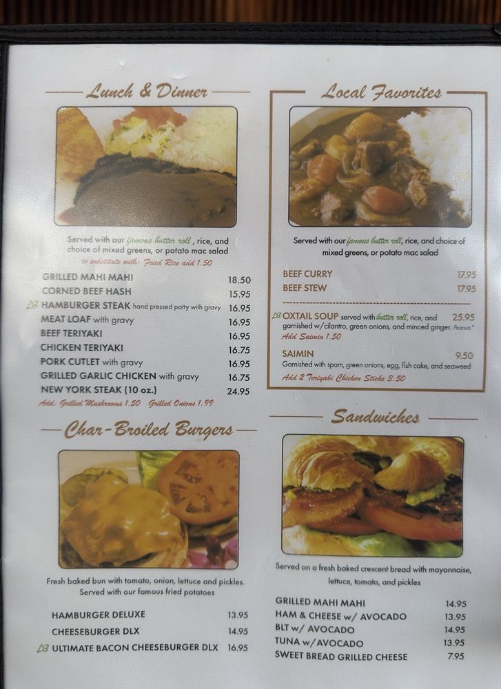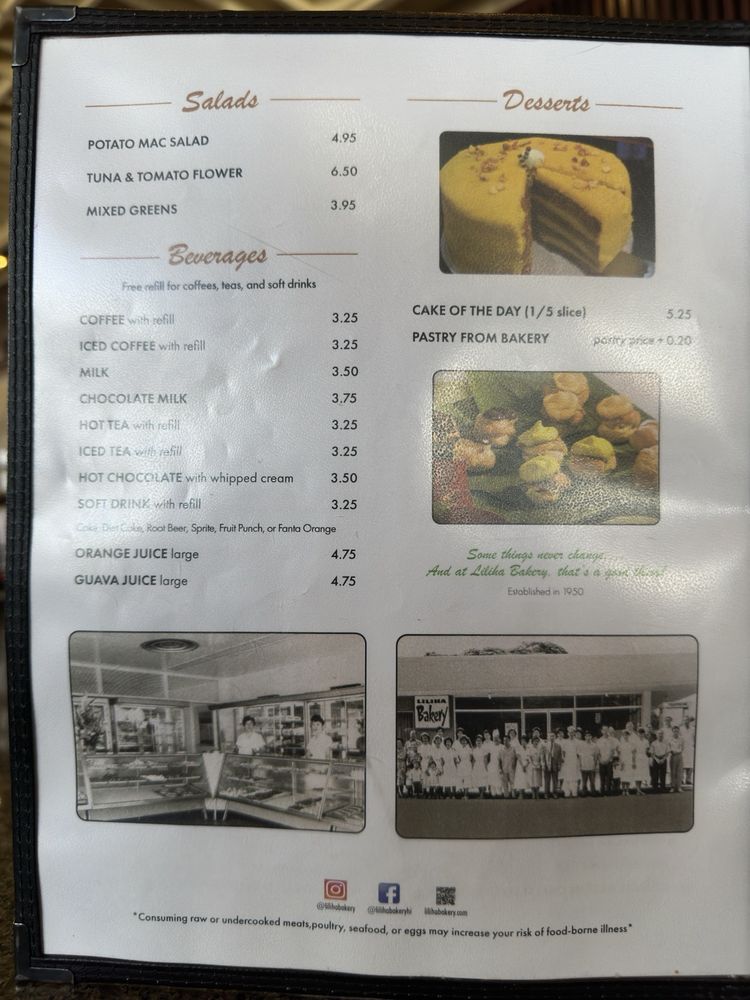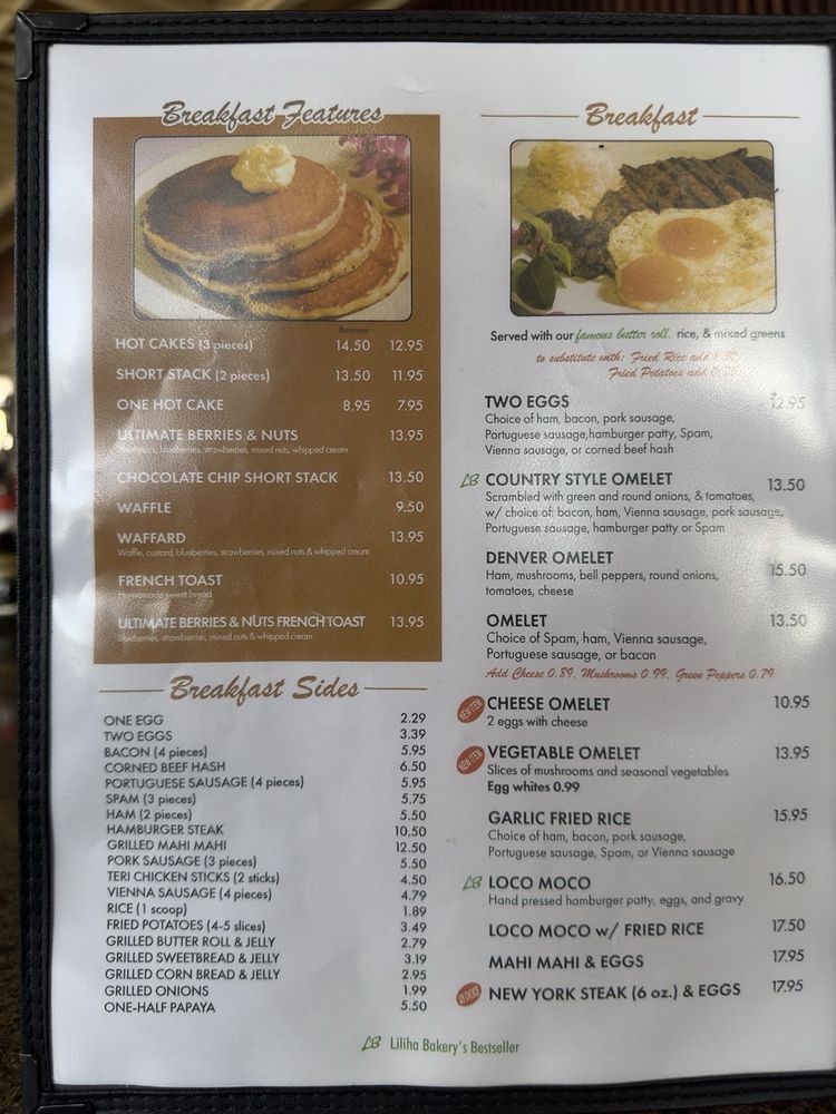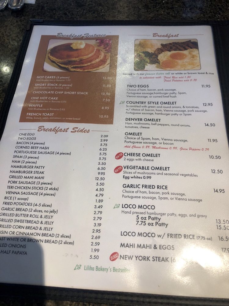 In the heart of Honolulu, Liliha Bakery offers a delightful fusion of bakery goods, diner classics, and brunch favorites. Renowned for their Coco Puffs and Green Tea Matcha Puffs, this establishment also impresses with savory dishes like Loco Moco with fried rice and ham and cheese croissants. The extensive menu provides options for vegetarians and gluten-free diners, ensuring everyone can enjoy the delectable offerings. Liliha Bakery's warm and buttery dinner rolls, complimented by guava syrup, along with flavorful Portuguese sausage and pork belly dishes, leave a lasting impression on visitors. The ambiance may be busy, but the efficient service and friendly staff make dining a pleasant experience. Don't miss out on their unique mac salad and kimchi fried rice. Liliha Bakery is a must-visit destination for a memorable dining experience.